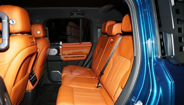 来到侧面,新车尺寸也是比较大的,车长5198毫米,车宽2050毫米,车高1950毫米,轴距2870毫米,并且这车是带空气悬架+CDC的,涉水深度达到了970毫米,所以整车体量感看起来是真的很大。